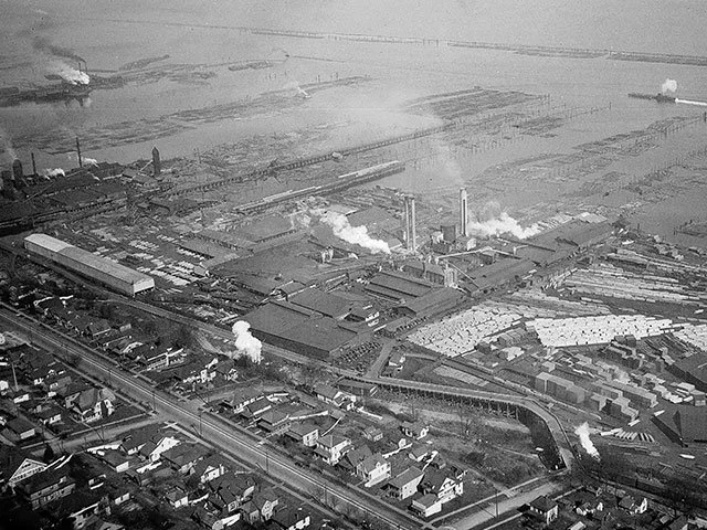 Historic Everett waterfront (circa 1928): Captures Everett’s lumber and shingle industry roots, reflecting its early industrial skyline.